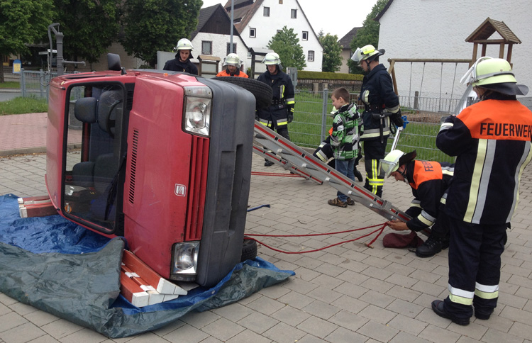 Betriebsstoffe abgebunden. Die im Fahrzeug sitzende Rettungspuppe