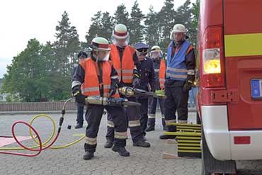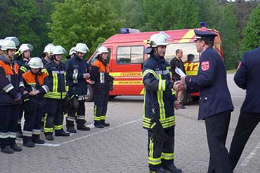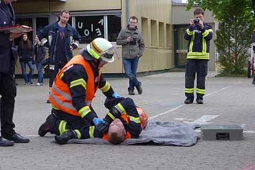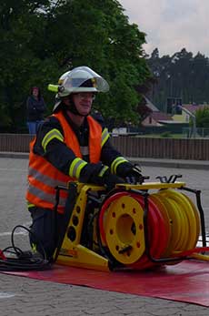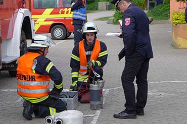 Zuerst mussten von den Teilnehmern das Wissen zu technischen Geräten und bestimmten Vorgehensweisen in einzelnen Truppaufgaben bewiesen werden. Ein Trupp musste die Motortauchpumpe erklären, ein weiterer die stabile Seitenlage vorführen.